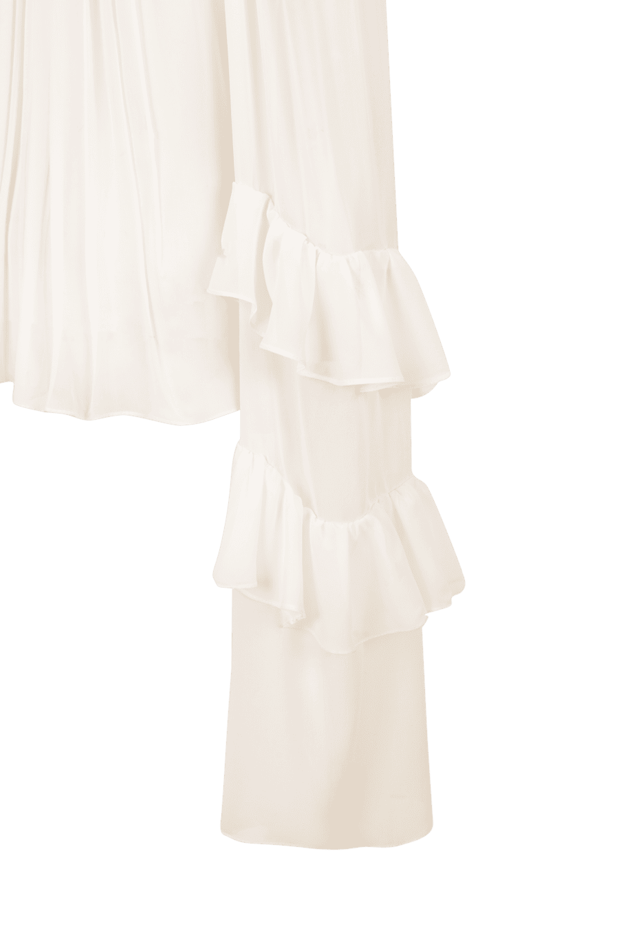 Blusa de estilo bohemio, realizado en georgette de seda, con mangas capa con volantes.