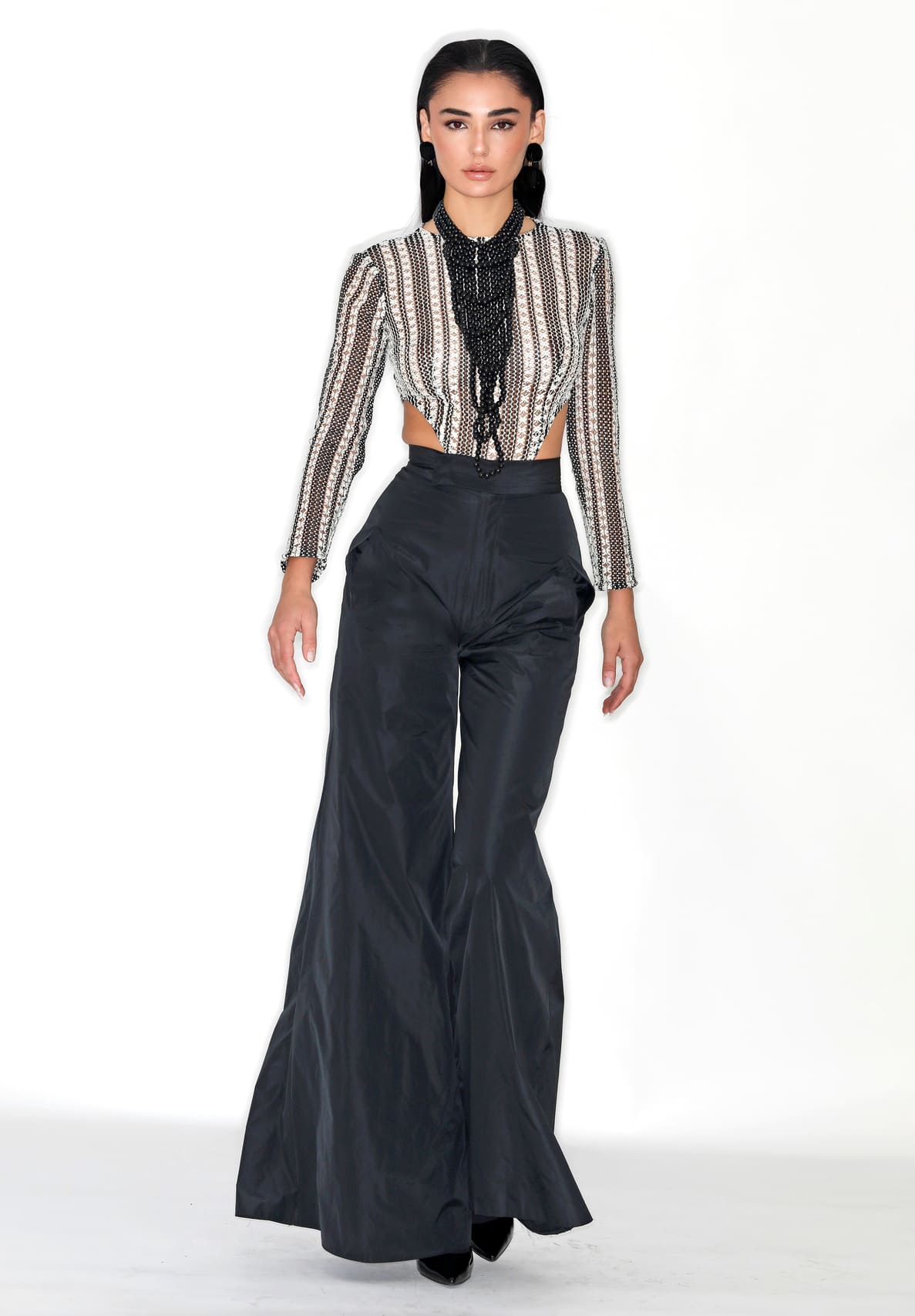 Bodysuit de cintura alta cuello caja, de crochet
